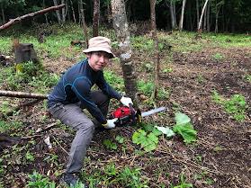 薪づくりのお手伝いに来ていただきました。元自衛官の方。パワフルです。8月末ぐらいには、終われるといいのですが、まだまだ薪づくり作業が続きます。